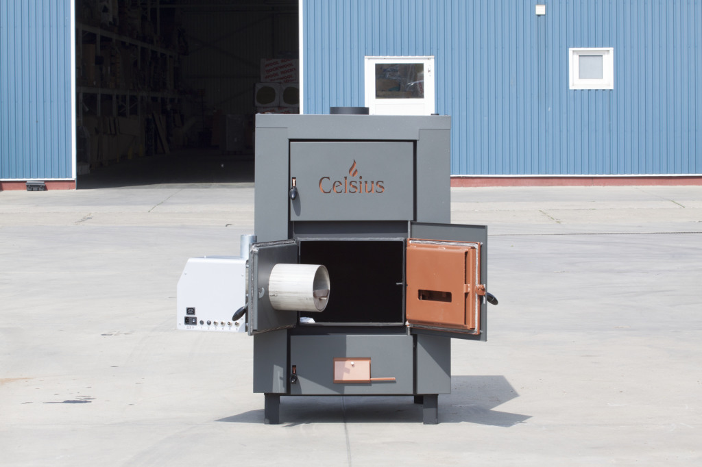 Celsius - B Max ir kombinēti granulu - malkas katli ar plauktu tipa siltummaini, kuri ir ērti apkalpošanā.